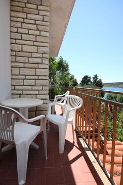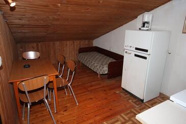 Az Apartman 7 főt tud fogadni. Az ágyak a/az 3 hálószobában, és a étkezőban/ben vannak, melynek méretei 67m2. A forró nyári estéket a vendégek saját balkonukon élvezhetik. Az apartmanból tengerre néző kilátás nyílik. A közös barbecue-helyet a vendég szabadon használhatja. A lefoglalt szállásegység folyosóján áthaladnak más vendégek, vagy a tulajdonosok.
