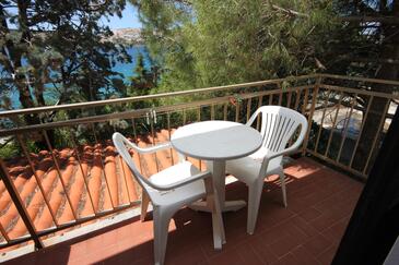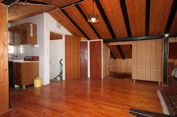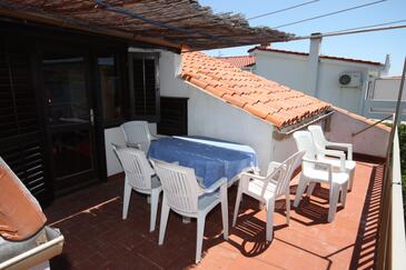 Az Apartman 7 főt tud fogadni. Az ágyak a/az 3 hálószobában, és a étkezőban/ben vannak, melynek méretei 67m2. A forró nyári estéket a vendégek saját balkonukon élvezhetik. Az apartmanból tengerre néző kilátás nyílik. A közös barbecue-helyet a vendég szabadon használhatja. A lefoglalt szállásegység folyosóján áthaladnak más vendégek, vagy a tulajdonosok.