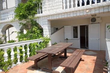 Az Apartman 5 főt tud fogadni. Az ágyak a/az 2 hálószobában vannak, melynek méretei 38m2. A forró nyári estéket a vendégek saját teraszukon élvezhetik. A közös barbecue-helyet a vendég szabadon használhatja. A lefoglalt szállásegység vendégeinek az érkezés napján a helyszínen letétet kell fizetniük (az összeg a honlapon fel van tüntetve).
