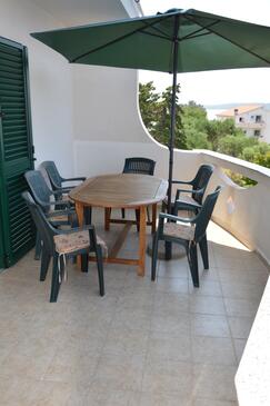 Az Apartman 6 főt tud fogadni. Az ágyak a/az 2 hálószobában, és a étkezőban/ben vannak, melynek méretei 51m2. A forró nyári estéket a vendégek saját teraszukon élvezhetik. Az apartmanból tengerre néző kilátás nyílik. A közös barbecue-helyet a vendég szabadon használhatja. A szállásegységbe lehetséges háziállatot hozni felár ellenében. A lefoglalt szállásegység vendégeinek az érkezés napján a helyszínen letétet kell fizetniük (az összeg a honlapon fel van tüntetve).