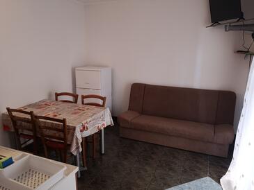 Az Apartman 4 főt tud fogadni. Az ágyak a/az 1 hálószobában, és a étkezőban/ben vannak, melynek méretei 22m2. A forró nyári estéket a vendégek saját teraszukon élvezhetik. A közös barbecue-helyet a vendég szabadon használhatja.
