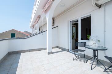 Az Apartman 5 főt tud fogadni. Az ágyak a/az 2 hálószobában vannak, melynek méretei 67m2. A forró nyári estéket a vendégek saját teraszukon élvezhetik. Az apartmanból tengerre néző kilátás nyílik. A közös barbecue-helyet a vendég szabadon használhatja. A vendégek itt tartózkodásuk ideje alatt használhatják a közös medencét. A szállásegységbe lehetséges háziállatot hozni, ennek költségét a foglalási díj tartalmazza. A lefoglalt szállásegység vendégeinek az érkezés napján a helyszínen letétet kell fizetniük (az összeg a honlapon fel van tüntetve).
