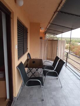 Az Apartman 4 főt tud fogadni. Az ágyak a/az 1 hálószobában, és a nappaliban/ben vannak, melynek méretei 33m2. A forró nyári estéket a vendégek saját teraszukon élvezhetik. Az apartmanból tengerre néző kilátás nyílik. A közös barbecue-helyet a vendég szabadon használhatja. A szállásegységbe lehetséges háziállatot hozni, ennek költségét a foglalási díj tartalmazza.