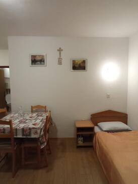 Az Apartman 4 főt tud fogadni. Az ágyak a/az 1 hálószobában, és a nappaliban/ben vannak, melynek méretei 33m2. A forró nyári estéket a vendégek saját teraszukon élvezhetik. Az apartmanból tengerre néző kilátás nyílik. A közös barbecue-helyet a vendég szabadon használhatja. A szállásegységbe lehetséges háziállatot hozni, ennek költségét a foglalási díj tartalmazza.