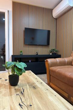 Az Apartman 4 főt tud fogadni. Az ágyak a/az 1 hálószobában, és a nappaliban/ben vannak, melynek méretei 44m2. A forró nyári estéket a vendégek saját balkonukon élvezhetik. Az apartmanból tengerre néző kilátás nyílik. A közös barbecue-helyet a vendég szabadon használhatja.