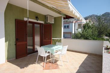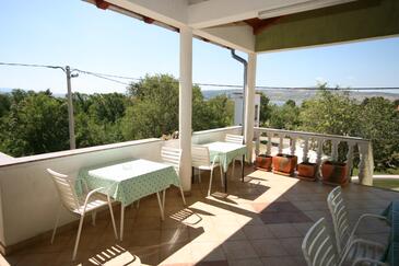 Az Apartman 8 főt tud fogadni. Az ágyak a/az 3 hálószobában vannak, melynek méretei 79m2. A forró nyári estéket a vendégek saját teraszukon élvezhetik. A közös barbecue-helyet a vendég szabadon használhatja. A lefoglalt szállásegység teraszán áthaladnak más vendégek, vagy a tulajdonosok.