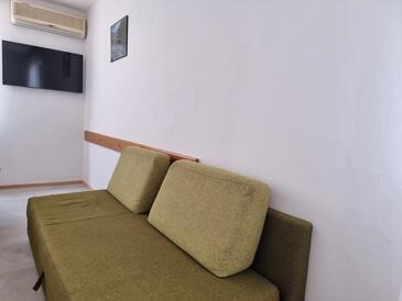 Az Apartman 4 főt tud fogadni. Az ágyak a/az 2 hálószobában vannak, melynek méretei 33m2. A forró nyári estéket a vendégek saját teraszukon élvezhetik. Az apartmanból tengerre néző kilátás nyílik. A közös barbecue-helyet a vendég szabadon használhatja. A szállásegység nincsen ajtóval elválasztva az objektum többi helyiségétől.