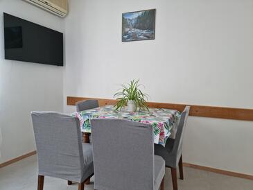 Az Apartman 4 főt tud fogadni. Az ágyak a/az 2 hálószobában vannak, melynek méretei 33m2. A forró nyári estéket a vendégek saját teraszukon élvezhetik. Az apartmanból tengerre néző kilátás nyílik. A közös barbecue-helyet a vendég szabadon használhatja. A szállásegység nincsen ajtóval elválasztva az objektum többi helyiségétől.