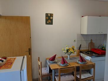 Az Apartman 4 főt tud fogadni. Az ágyak a/az 1 hálószobában, és a étkezőban/ben vannak, melynek méretei 34m2. A forró nyári estéket a vendégek saját balkonukon élvezhetik. Az apartmanból tengerre néző kilátás nyílik. A közös barbecue-helyet a vendég szabadon használhatja. A szállásegységbe lehetséges háziállatot hozni felár ellenében.