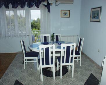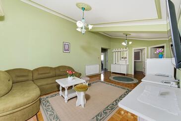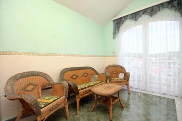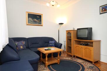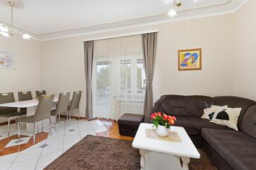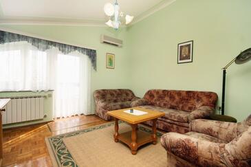 Az Apartman 5 főt tud fogadni. Az ágyak a/az 2 hálószobában, és a nappaliban/ben vannak, melynek méretei 42m2. A forró nyári estéket a vendégek saját teraszukon élvezhetik. Az apartmanból tengerre néző kilátás nyílik. A közös barbecue-helyet a vendég szabadon használhatja. A vendégek itt tartózkodásuk ideje alatt használhatják a közös medencét.