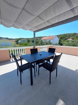 Az Apartman 6 főt tud fogadni. Az ágyak a/az 2 hálószobában vannak, melynek méretei 38m2. A forró nyári estéket a vendégek saját teraszukon élvezhetik. Az apartmanból tengerre néző kilátás nyílik. A közös barbecue-helyet a vendég szabadon használhatja.