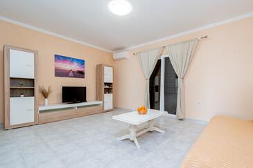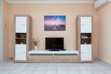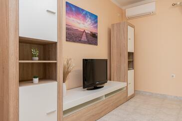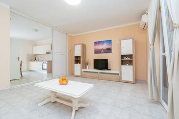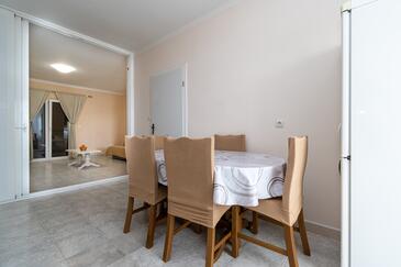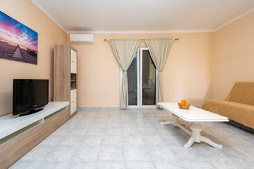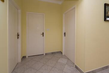 Az Apartman 6 főt tud fogadni. Az ágyak a/az 2 hálószobában, és a nappaliban/ben vannak, melynek méretei 73m2. A forró nyári estéket a vendégek saját teraszukon élvezhetik. Az apartmanból tengerre néző kilátás nyílik. A közös barbecue-helyet a vendég szabadon használhatja. A lefoglalt szállásegység erkélyén áthaladnak más vendégek, vagy a tulajdonosok.