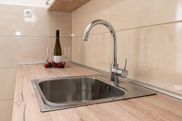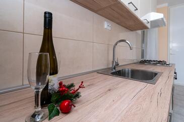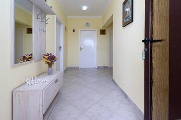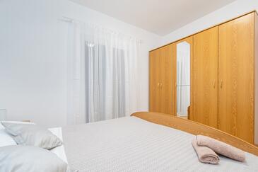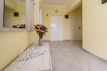 Az Apartman 6 főt tud fogadni. Az ágyak a/az 2 hálószobában, és a nappaliban/ben vannak, melynek méretei 73m2. A forró nyári estéket a vendégek saját teraszukon élvezhetik. Az apartmanból tengerre néző kilátás nyílik. A közös barbecue-helyet a vendég szabadon használhatja. A lefoglalt szállásegység erkélyén áthaladnak más vendégek, vagy a tulajdonosok.