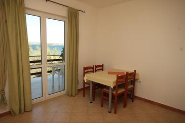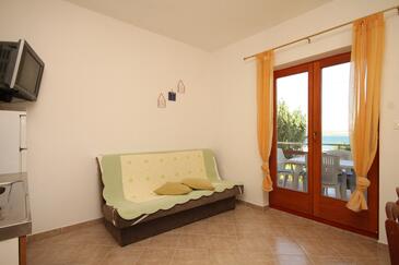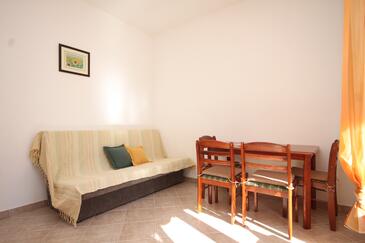 Az Apartman 4 főt tud fogadni. Az ágyak a/az 1 hálószobában, és a étkezőban/ben vannak, melynek méretei 28m2. A forró nyári estéket a vendégek saját teraszukon élvezhetik. Az apartmanból tengerre néző kilátás nyílik. A közös barbecue-helyet a vendég szabadon használhatja.