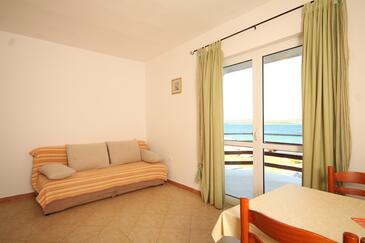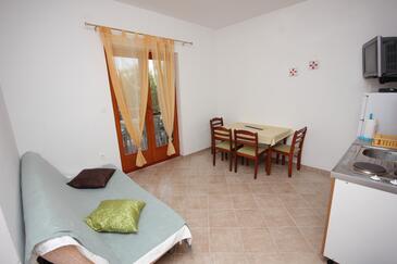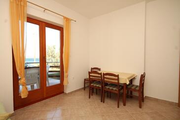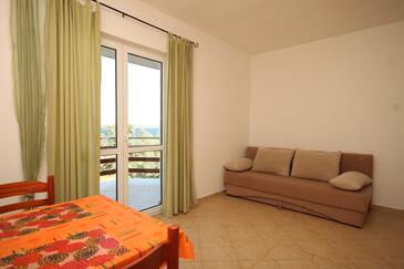 Az Apartman 4 főt tud fogadni. Az ágyak a/az 1 hálószobában, és a étkezőban/ben vannak, melynek méretei 28m2. A forró nyári estéket a vendégek saját teraszukon élvezhetik. Az apartmanból tengerre néző kilátás nyílik. A közös barbecue-helyet a vendég szabadon használhatja.