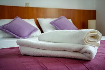 Az Apartman 6 főt tud fogadni. Az ágyak a/az 2 hálószobában, és a nappaliban/ben vannak, melynek méretei 50m2. A forró nyári estéket a vendégek saját teraszukon élvezhetik. Az apartmanból tengerre néző kilátás nyílik. A közös barbecue-helyet a vendég szabadon használhatja. A vendégek itt tartózkodásuk ideje alatt használhatják a közös medencét.