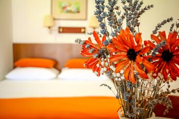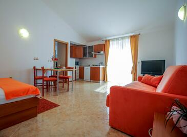 Az Apartman 6 főt tud fogadni. Az ágyak a/az 2 hálószobában, és a nappaliban/ben vannak, melynek méretei 50m2. A forró nyári estéket a vendégek saját teraszukon élvezhetik. Az apartmanból tengerre néző kilátás nyílik. A közös barbecue-helyet a vendég szabadon használhatja. A vendégek itt tartózkodásuk ideje alatt használhatják a közös medencét.