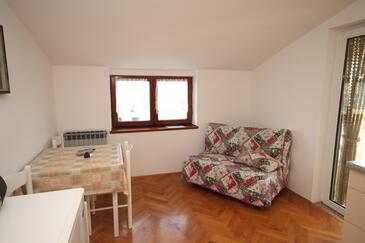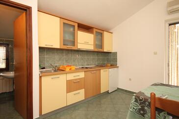 Az Apartman 5 főt tud fogadni. Az ágyak a/az 2 hálószobában, és a étkezőban/ben vannak, melynek méretei 45m2. A forró nyári estéket a vendégek saját teraszukon élvezhetik. Az apartmanból tengerre néző kilátás nyílik. A közös barbecue-helyet a vendég szabadon használhatja. A szállásegységbe lehetséges háziállatot hozni felár ellenében.