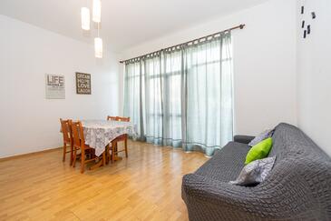 Az Apartman 5 főt tud fogadni. Az ágyak a/az 2 hálószobában, és a étkezőban/ben vannak, melynek méretei 53m2. A forró nyári estéket a vendégek saját teraszukon élvezhetik. Az apartmanból tengerre néző kilátás nyílik. A közös barbecue-helyet a vendég szabadon használhatja. A szállásegységbe lehetséges háziállatot hozni, ennek költségét a foglalási díj tartalmazza.
