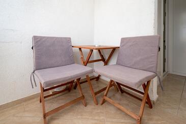 Az Apartman 3 főt tud fogadni. Az ágyak a/az 1 hálószobában vannak, melynek méretei 27m2. A forró nyári estéket a vendégek saját teraszukon élvezhetik. Az apartmanból tengerre néző kilátás nyílik. A közös barbecue-helyet a vendég szabadon használhatja.