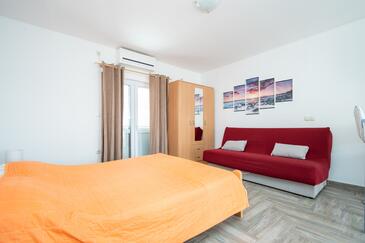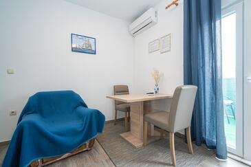 Az Apartman 3 főt tud fogadni. Az ágyak a/az 1 hálószobában vannak, melynek méretei 27m2. A forró nyári estéket a vendégek saját teraszukon élvezhetik. Az apartmanból tengerre néző kilátás nyílik. A közös barbecue-helyet a vendég szabadon használhatja.