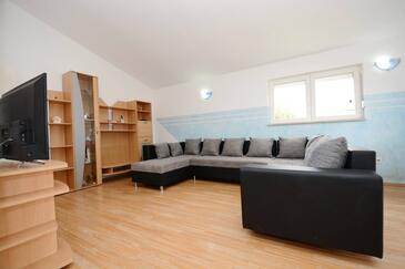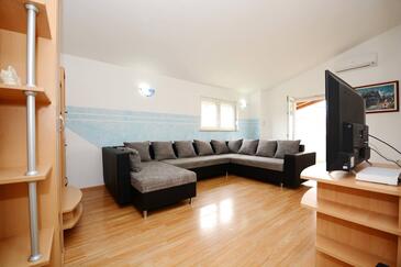 Az Apartman 6 főt tud fogadni. Az ágyak a/az 2 hálószobában, és a nappaliban/ben vannak, melynek méretei 78m2. A forró nyári estéket a vendégek saját teraszukon élvezhetik. Az apartmanból tengerre néző kilátás nyílik. A közös barbecue-helyet a vendég szabadon használhatja. A szállásegységbe lehetséges háziállatot hozni felár ellenében.