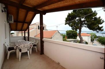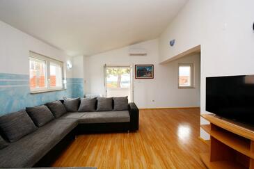 Az Apartman 6 főt tud fogadni. Az ágyak a/az 2 hálószobában, és a nappaliban/ben vannak, melynek méretei 78m2. A forró nyári estéket a vendégek saját teraszukon élvezhetik. Az apartmanból tengerre néző kilátás nyílik. A közös barbecue-helyet a vendég szabadon használhatja. A szállásegységbe lehetséges háziállatot hozni felár ellenében.