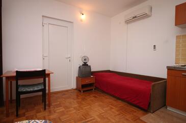 Az Apartman 6 főt tud fogadni. Az ágyak a/az 3 hálószobában vannak, melynek méretei 73m2. A forró nyári estéket a vendégek saját teraszukon élvezhetik. Az apartmanból tengerre néző kilátás nyílik. A közös barbecue-helyet a vendég szabadon használhatja.