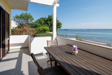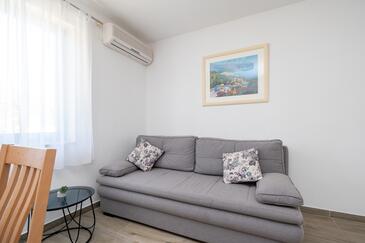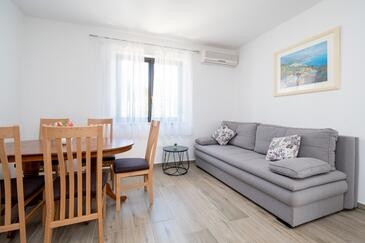 Az Apartman 7 főt tud fogadni. Az ágyak a/az 3 hálószobában vannak, melynek méretei 85m2. A forró nyári estéket a vendégek saját teraszukon élvezhetik. Az apartmanból tengerre néző kilátás nyílik. A közös barbecue-helyet a vendég szabadon használhatja. A lefoglalt szállásegység bizonyos helyiségei nem összekötöttek.