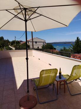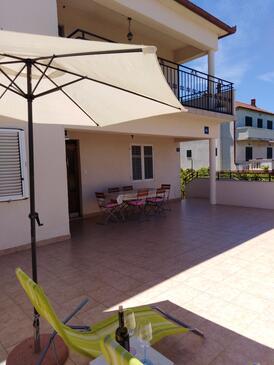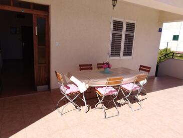 Az Apartman 7 főt tud fogadni. Az ágyak a/az 3 hálószobában, és a étkezőban/ben vannak, melynek méretei 75m2. A forró nyári estéket a vendégek saját teraszukon élvezhetik. Az apartmanból tengerre néző kilátás nyílik. A közös barbecue-helyet a vendég szabadon használhatja. A szállásegységbe lehetséges háziállatot hozni, ennek költségét a foglalási díj tartalmazza.