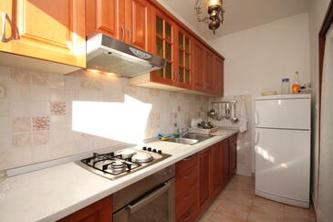 Az Apartman 7 főt tud fogadni. Az ágyak a/az 3 hálószobában, és a étkezőban/ben vannak, melynek méretei 75m2. A forró nyári estéket a vendégek saját teraszukon élvezhetik. Az apartmanból tengerre néző kilátás nyílik. A közös barbecue-helyet a vendég szabadon használhatja. A szállásegységbe lehetséges háziállatot hozni, ennek költségét a foglalási díj tartalmazza.