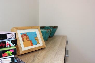 Az Apartman 4 főt tud fogadni. Az ágyak a/az 1 hálószobában, és a nappaliban/ben vannak, melynek méretei 39m2. A forró nyári estéket a vendégek saját teraszukon élvezhetik. Az apartmanból tengerre néző kilátás nyílik. A közös barbecue-helyet a vendég szabadon használhatja. A szállásegységbe lehetséges háziállatot hozni felár ellenében.