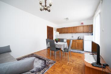 Az Apartman 5 főt tud fogadni. Az ágyak a/az 2 hálószobában, és a nappaliban/ben vannak, melynek méretei 45m2. A forró nyári estéket a vendégek saját teraszukon élvezhetik. A közös barbecue-helyet a vendég szabadon használhatja.