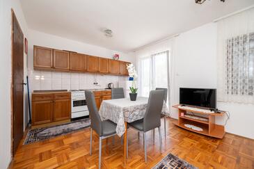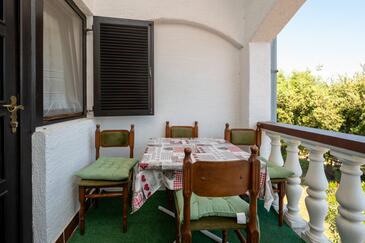 Az Apartman 5 főt tud fogadni. Az ágyak a/az 2 hálószobában, és a nappaliban/ben vannak, melynek méretei 45m2. A forró nyári estéket a vendégek saját teraszukon élvezhetik. A közös barbecue-helyet a vendég szabadon használhatja.