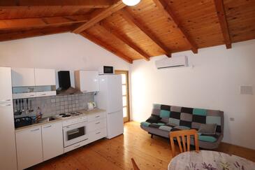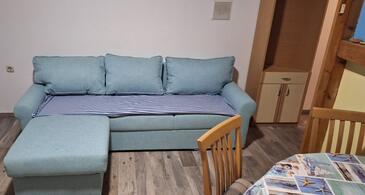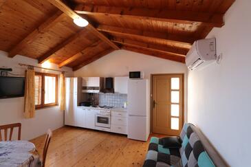 Az Apartman 4 főt tud fogadni. Az ágyak a/az 1 hálószobában, és a étkezőban/ben vannak, melynek méretei 29m2. A forró nyári estéket a vendégek saját teraszukon élvezhetik. Az apartmanból tengerre néző kilátás nyílik. A közös barbecue-helyet a vendég szabadon használhatja. A szállásegységbe lehetséges háziállatot hozni felár ellenében.