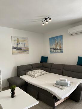 Az Apartman 4 főt tud fogadni. Az ágyak a/az 2 hálószobában vannak, melynek méretei 37m2. A forró nyári estéket a vendégek saját teraszukon élvezhetik. Az apartmanból tengerre néző kilátás nyílik. A közös barbecue-helyet a vendég szabadon használhatja.
