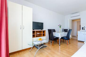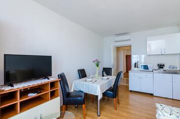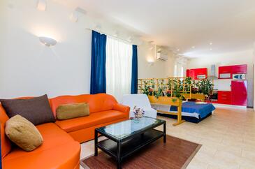 Az Apartman 5 főt tud fogadni. Az ágyak a/az 1 hálószobában, és a nappaliban/ben vannak, melynek méretei 37m2. A forró nyári estéket a vendégek saját teraszukon élvezhetik. Az apartmanból tengerre néző kilátás nyílik. A teljes élvezet és kikapcsolódás érdekében van saját barbecue hely is, csakis e szálláshely vendégei számára.
