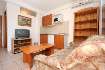 Az Apartman 5 főt tud fogadni. Az ágyak a/az 2 hálószobában, és a nappaliban/ben vannak, melynek méretei 38m2. A forró nyári estéket a vendégek saját teraszukon élvezhetik. Az apartmanból tengerre néző kilátás nyílik. A közös barbecue-helyet a vendég szabadon használhatja. A vendégek itt tartózkodásuk ideje alatt használhatják a közös medencét.