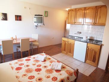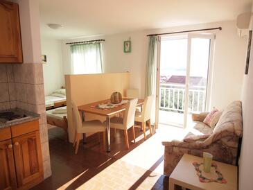 Az Apartman 5 főt tud fogadni. Az ágyak a/az 1 hálószobában, és a nappaliban/ben vannak, melynek méretei 46m2. A közös barbecue-helyet a vendég szabadon használhatja. A lefoglalt szállásegységhez nem tartozik erkély vagy terasz..