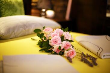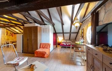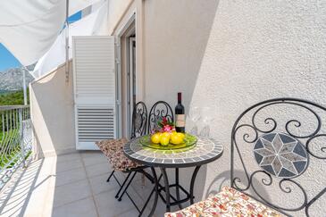 Az Apartman 4 főt tud fogadni. Az ágyak a/az 1 hálószobában, és a nappaliban/ben vannak, melynek méretei 33m2. A forró nyári estéket a vendégek saját teraszukon élvezhetik. Az apartmanból tengerre néző kilátás nyílik. A közös barbecue-helyet a vendég szabadon használhatja. A szállásegységbe lehetséges háziállatot hozni felár ellenében. A lefoglalt szállásegység vendégeinek az érkezés napján a helyszínen letétet kell fizetniük (az összeg a honlapon fel van tüntetve).