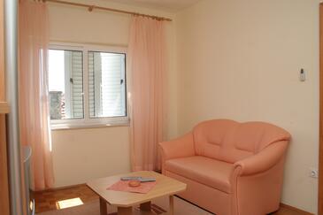 Az Apartman 4 főt tud fogadni. Az ágyak a/az 2 hálószobában vannak, melynek méretei 63m2. A forró nyári estéket a vendégek saját teraszukon élvezhetik. Az apartmanból tengerre néző kilátás nyílik. A közös barbecue-helyet a vendég szabadon használhatja.
