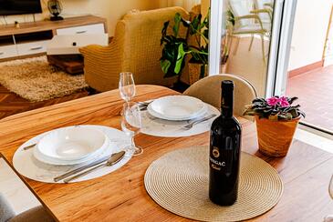 Az Apartman 4 főt tud fogadni. Az ágyak a/az 2 hálószobában vannak, melynek méretei 63m2. A forró nyári estéket a vendégek saját teraszukon élvezhetik. Az apartmanból tengerre néző kilátás nyílik. A közös barbecue-helyet a vendég szabadon használhatja.