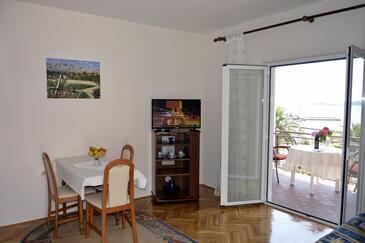 Az Apartman 4 főt tud fogadni. Az ágyak a/az 2 hálószobában vannak, melynek méretei 66m2. A forró nyári estéket a vendégek saját teraszukon élvezhetik. Az apartmanból tengerre néző kilátás nyílik. A közös barbecue-helyet a vendég szabadon használhatja.