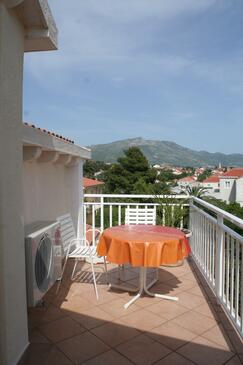 Az Apartman 4 főt tud fogadni. Az ágyak a/az 2 hálószobában vannak, melynek méretei 65m2. A forró nyári estéket a vendégek saját balkonukon élvezhetik. Az apartmanból tengerre néző kilátás nyílik. A közös barbecue-helyet a vendég szabadon használhatja.