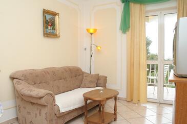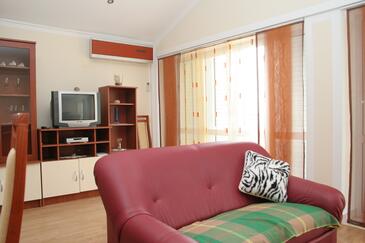 Az Apartman 4 főt tud fogadni. Az ágyak a/az 2 hálószobában vannak, melynek méretei 65m2. A forró nyári estéket a vendégek saját balkonukon élvezhetik. Az apartmanból tengerre néző kilátás nyílik. A közös barbecue-helyet a vendég szabadon használhatja.