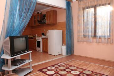 Az Apartman 5 főt tud fogadni. Az ágyak a/az 1 hálószobában, és a nappaliban/ben vannak, melynek méretei 50m2. A forró nyári estéket a vendégek saját teraszukon élvezhetik. A közös barbecue-helyet a vendég szabadon használhatja. A szállásegységbe lehetséges háziállatot hozni felár ellenében.