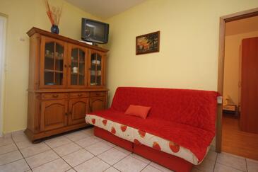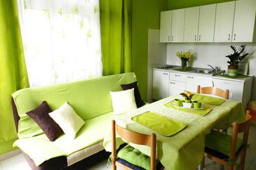 Az Apartman 5 főt tud fogadni. Az ágyak a/az 2 hálószobában vannak, melynek méretei 48m2. A forró nyári estéket a vendégek saját balkonukon élvezhetik. Az apartmanból tengerre néző kilátás nyílik. A közös barbecue-helyet a vendég szabadon használhatja. A szállásegységbe lehetséges háziállatot hozni, ennek költségét a foglalási díj tartalmazza.