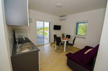 Az Apartman 4 főt tud fogadni. Az ágyak a/az 1 hálószobában, és a nappaliban/ben vannak, melynek méretei 40m2. A forró nyári estéket a vendégek saját teraszukon élvezhetik. Az apartmanból tengerre néző kilátás nyílik. A teljes élvezet és kikapcsolódás érdekében van saját barbecue hely is, csakis e szálláshely vendégei számára.