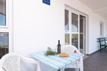 Az Apartman 4 főt tud fogadni. Az ágyak a/az 1 hálószobában, és a nappaliban/ben vannak, melynek méretei 37m2. Az apartmanból tengerre néző kilátás nyílik. A közös barbecue-helyet a vendég szabadon használhatja. A szállásegységbe lehetséges háziállatot hozni felár ellenében. A lefoglalt szállásegység közös teraszt használ..