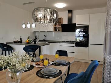Az Ház 4 főt tud fogadni. Az ágyak a/az 2 hálószobában vannak, melynek méretei 80m2. A forró nyári estéket a vendégek saját teraszukon élvezhetik. A házból tengerre néző kilátás nyílik. A teljes élvezet és kikapcsolódás érdekében van saját barbecue hely is, csakis e szálláshely vendégei számára.